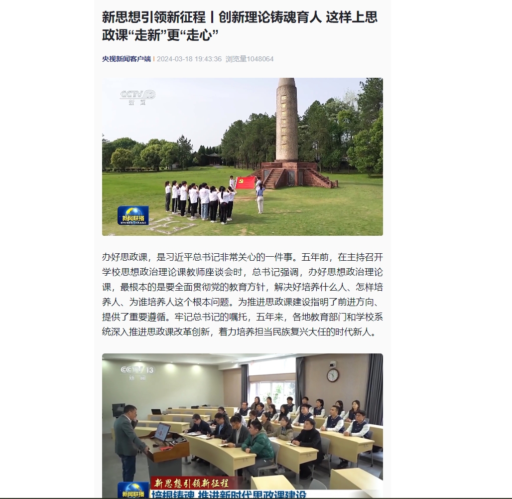 系统深入推进思政课改革创新,着力培养担当民族复兴大任的时代新人。