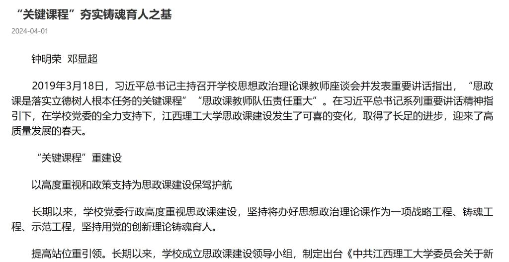 党委行政高度重视思政课建设,坚持将办好思想政治理论课作为一项战略工程、铸魂工程、示范工程,坚持用党的创新理论铸魂育人。