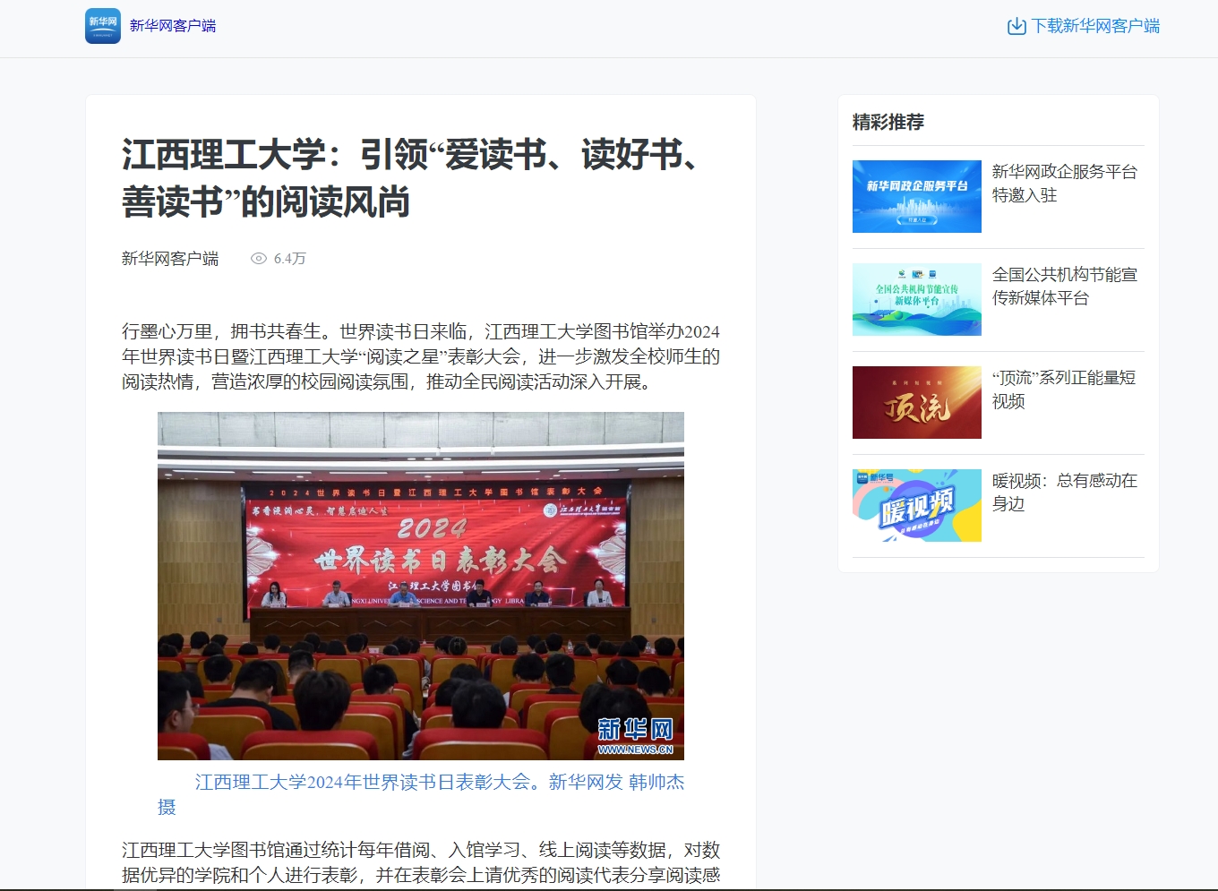 金年会体育2024年世界读书日表彰大会。新华网发 韩帅杰 摄