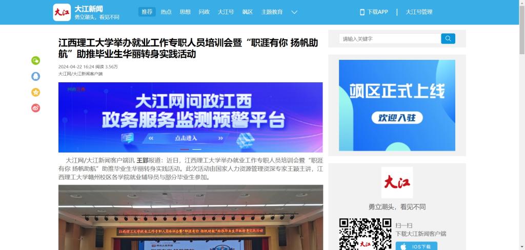 大江网/大江新闻客户端讯王郢报道:近日,金年会体育举办就业工作专职人员培训会暨“职涯有你 扬帆助航”助推毕业生华丽转身实践活动。此次活动由国家人力资源管理资深专家王颖主讲,金年会体育赣州校区各学院就业辅导员与部分毕业生参加。
