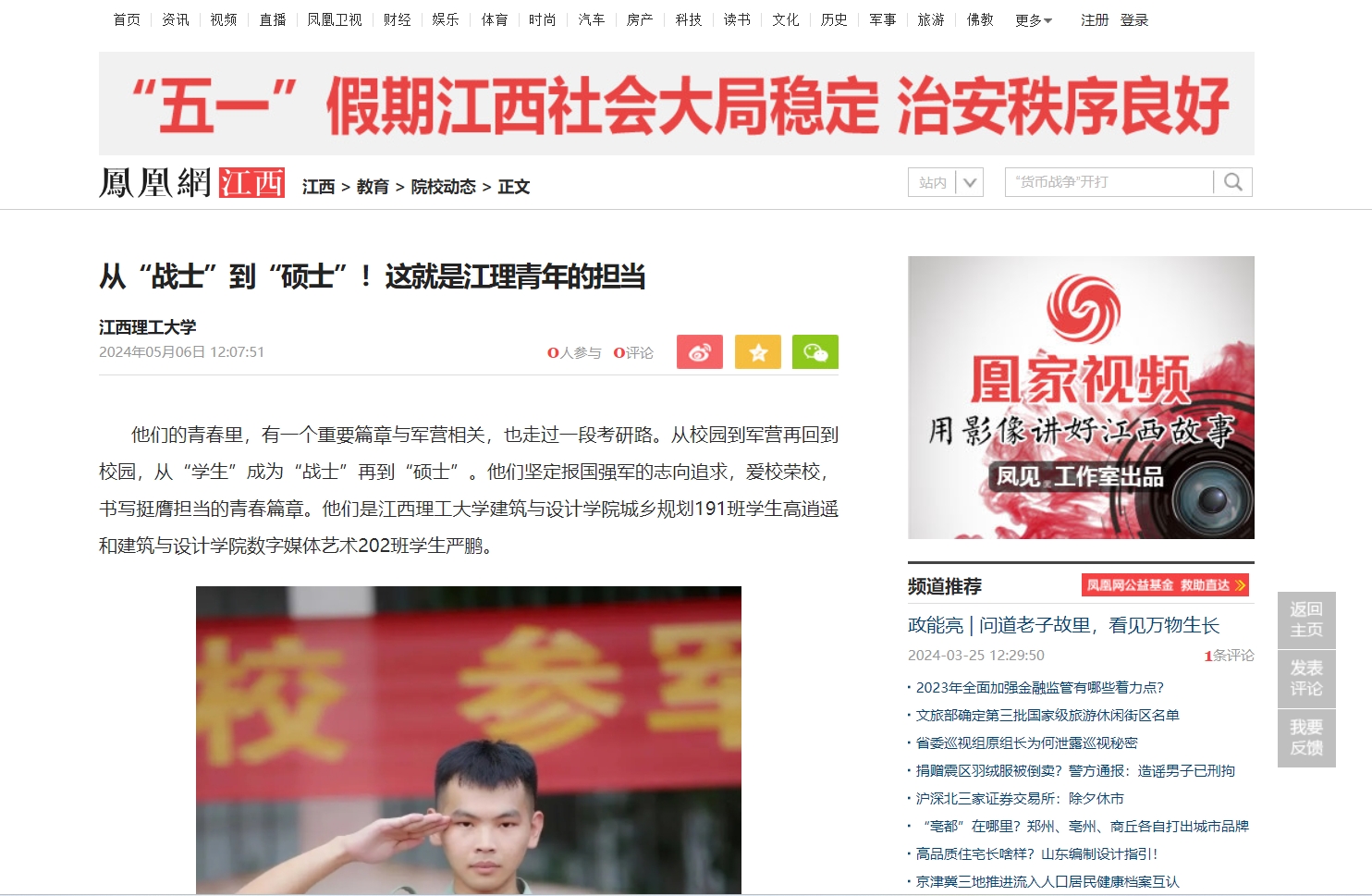他们的青春里,有一个重要篇章与军营相关,也走过一段考研路。从校园到军营再回到校园,从“学生”成为“战士”再到“硕士”。他们坚定报国强军的志向追求,爱校荣校,书写挺膺担当的青春篇章。他们是金年会体育建筑与设计学院城乡规划191班学生高逍遥和建筑与设计学院数字媒体艺术202班学生严鹏。