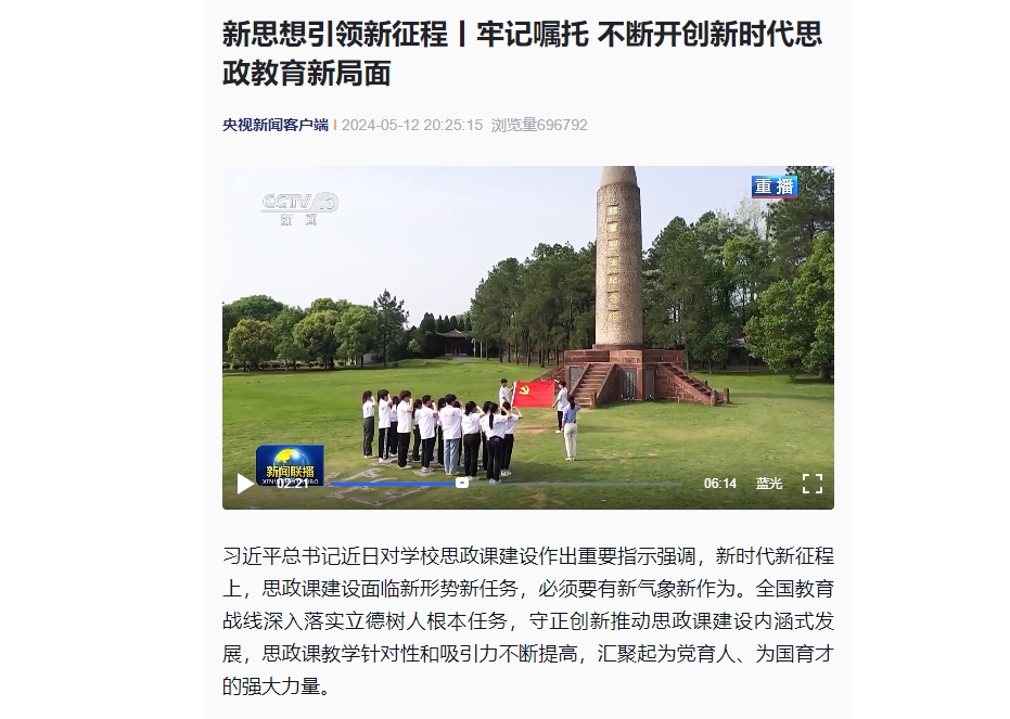 思政课建设作出重要指示强调,新时代新征程上,思政课建设面临新形势新任务,必须要有新气象新作为。全国教育战线深入落实立德树人根本任务,守正创新推动思政课建设内涵式发展,思政课教学针对性和吸引力不断提高,汇聚起为党育人、为国育才的强大力量。