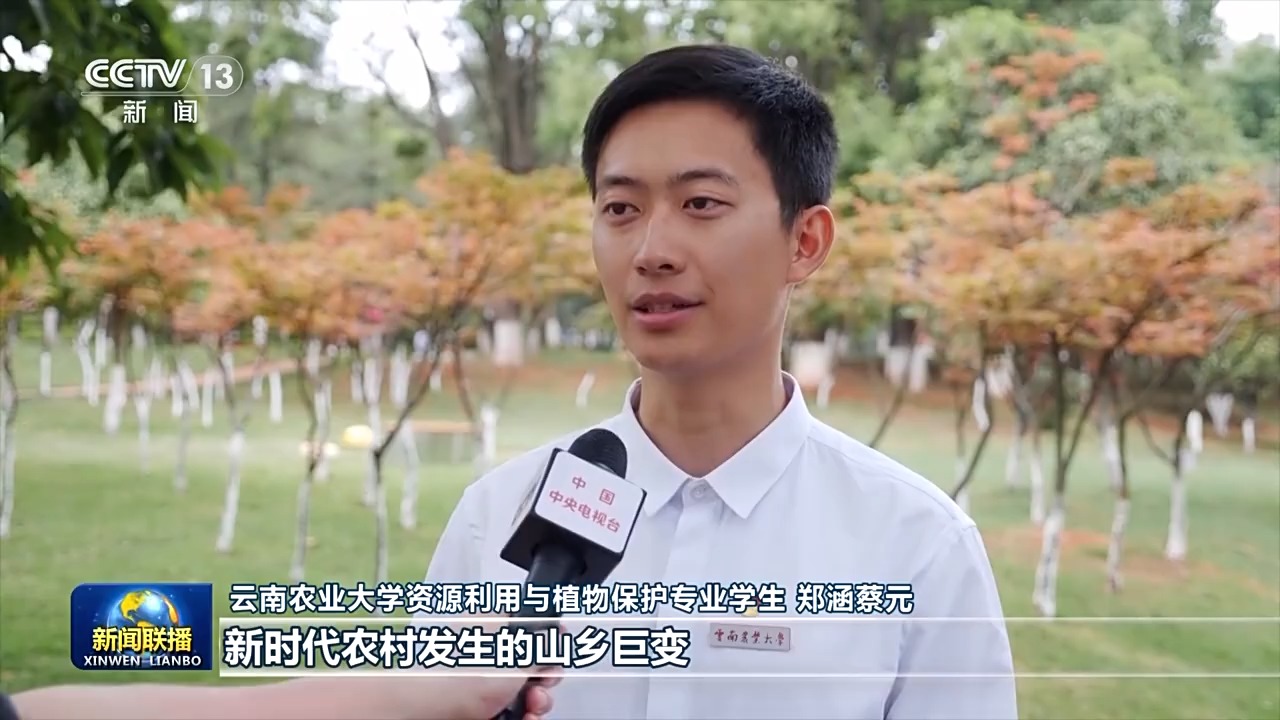 云南农业大学资源利用与植物保护专业学生 郑涵蔡元:思政小课堂与社会大课堂结合,让我们走进了祖国的广袤乡土,我有幸见证了,在乡村振兴战略的推动下,新时代农村发生的山乡巨变,让我对中国特色社会主义道路信心满满,增强了我们做中国人的志气、骨气、底气。