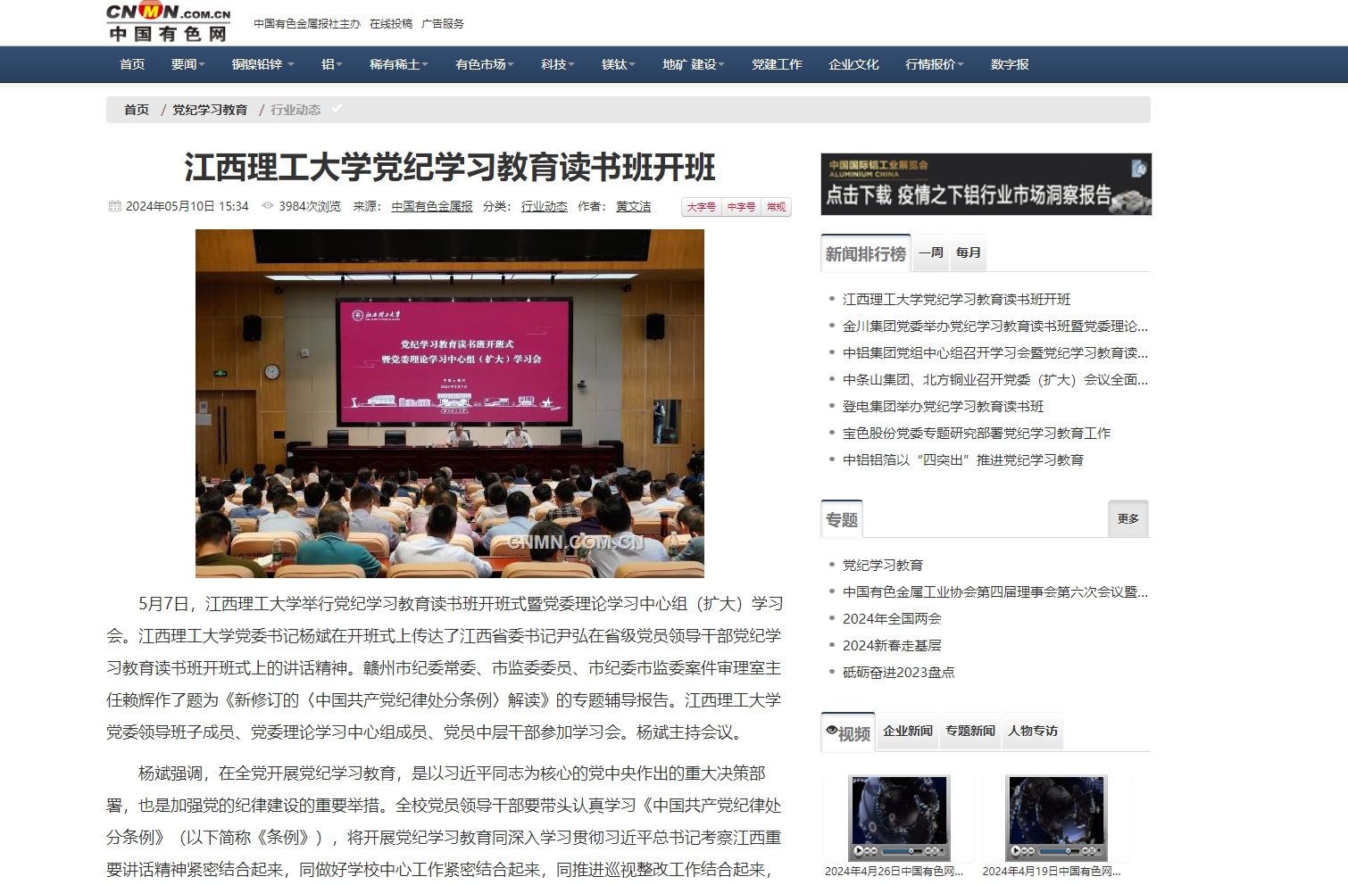 5月7日,金年会体育举行党纪学习教育读书班开班式暨党委理论学习中心组(扩大)学习会。金年会体育党委书记杨斌在开班式上传达了江西省委书记尹弘在省级党员领导干部党纪学习教育读书班开班式上的讲话精神。赣州市纪委常委、市监委委员、市纪委市监委案件审理室主任赖辉作了题为《新修订的〈中国共产党纪律处分条例〉解读》的专题辅导报告。金年会体育党委领导班子成员、党委理论学习中心组成员、党员中层干部参加学习会。杨斌主持会议。