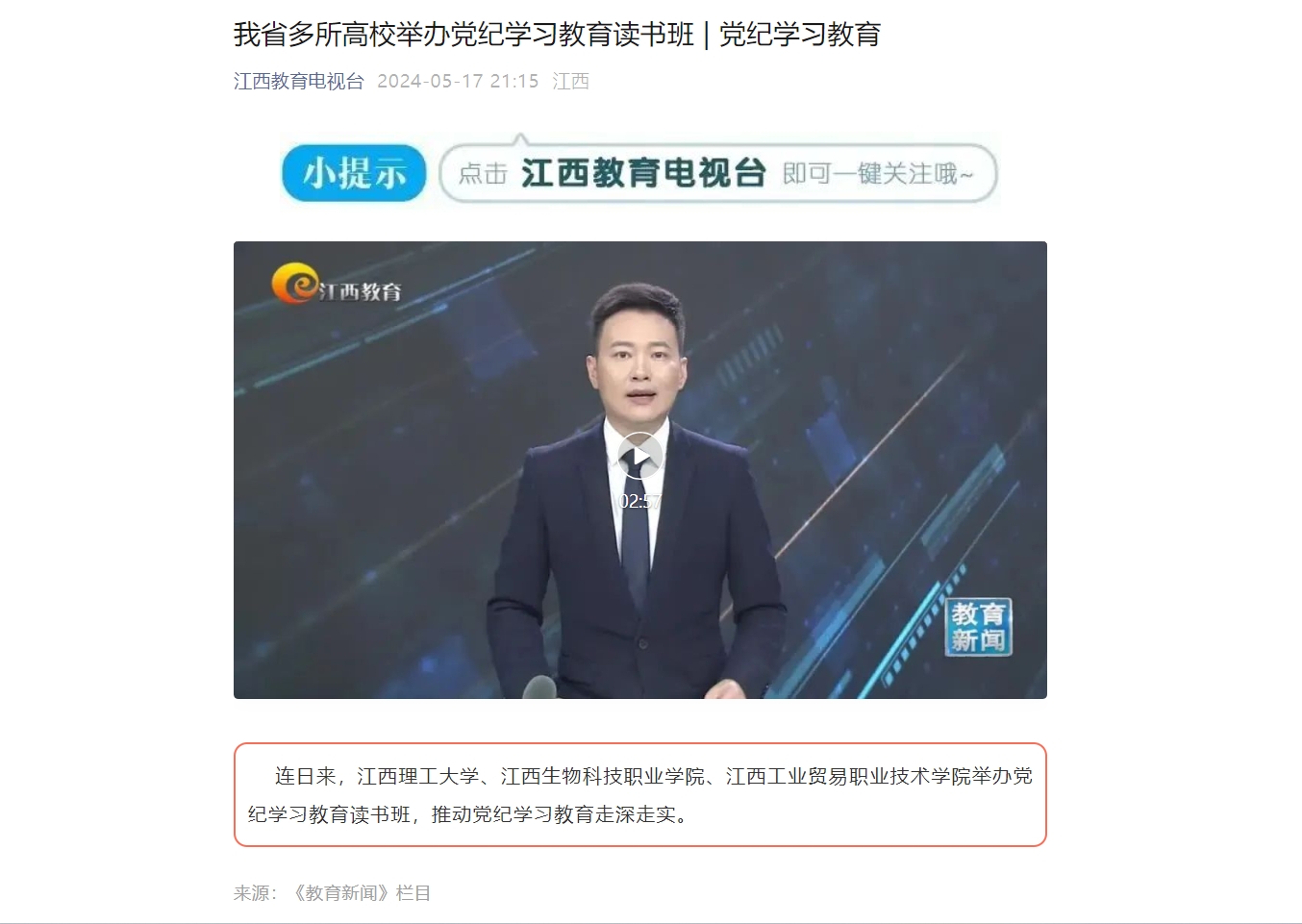 连日来,金年会体育、江西生物科技职业学院、江西工业贸易职业技术学院举办党纪学习教育读书班,推动党纪学习教育走深走实。
