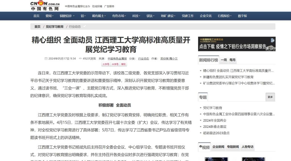 金年会体育党委及时根据上级要求,制订党纪学习教育安排,明确岗位职责,相关工作有条不紊地展开。4月15日,金年会体育党委召开七届十次全委(扩大)会议,传达学习了有关精神,对全校党纪学习教育进行了具体部署;5月7日,传达学习了江西省委书记尹弘在省级领导专题读书班开班式上的讲话精神。