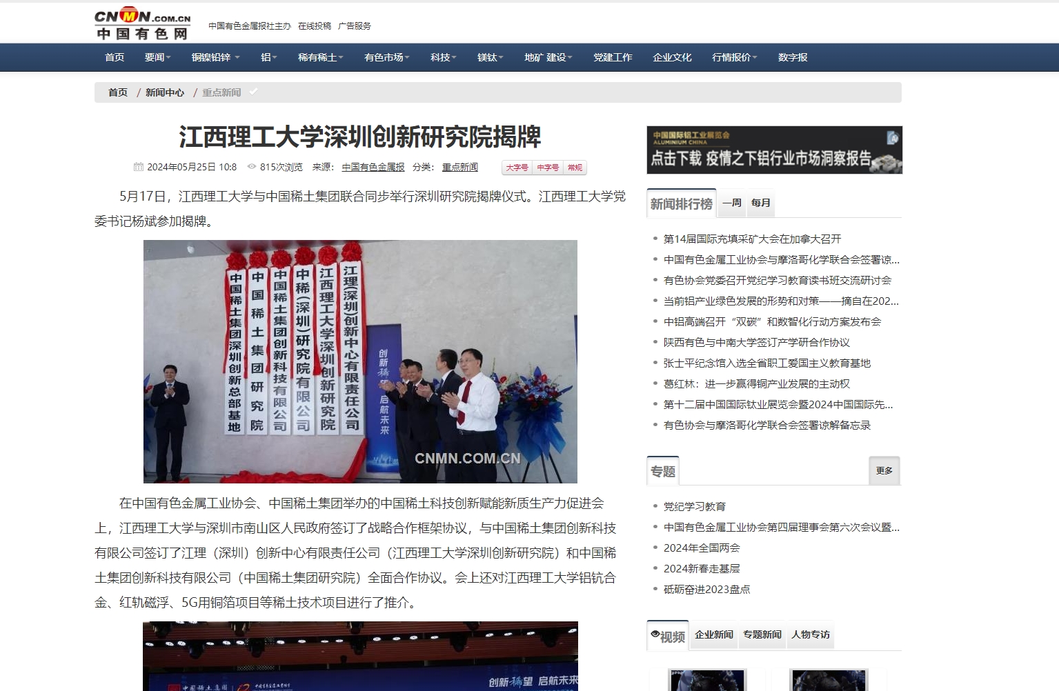 5月17日,金年会体育与中国稀土集团联合同步举行深圳研究院揭牌仪式。金年会体育党委书记杨斌参加揭牌。