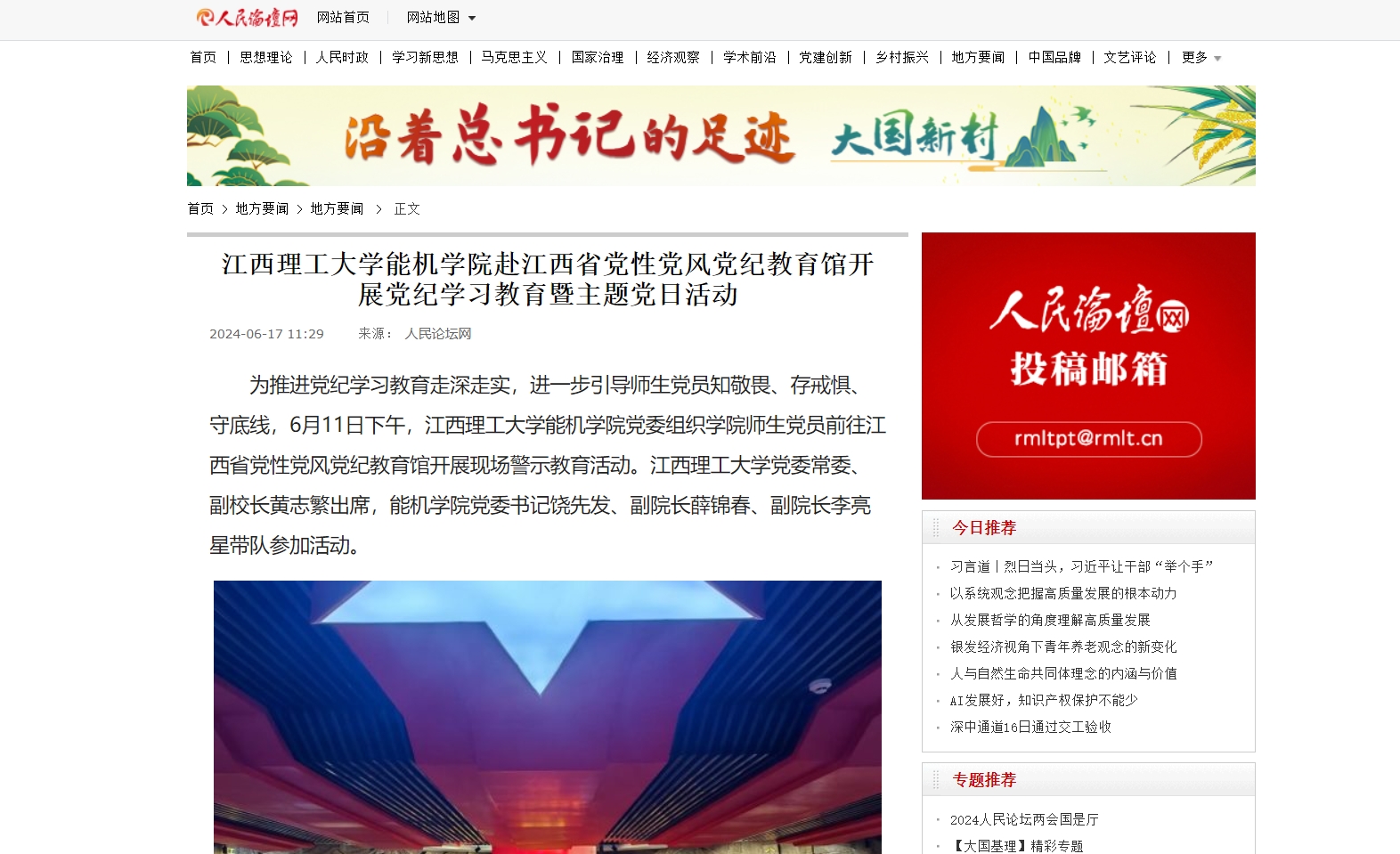 为推进党纪学习教育走深走实,进一步引导师生党员知敬畏、存戒惧、守底线,6月11日下午,金年会体育能机学院党委组织学院师生党员前往江西省党性党风党纪教育馆开展现场警示教育活动。金年会体育党委常委、副校长黄志繁出席,能机学院党委书记饶先发、副院长薛锦春、副院长李亮星带队参加活动。