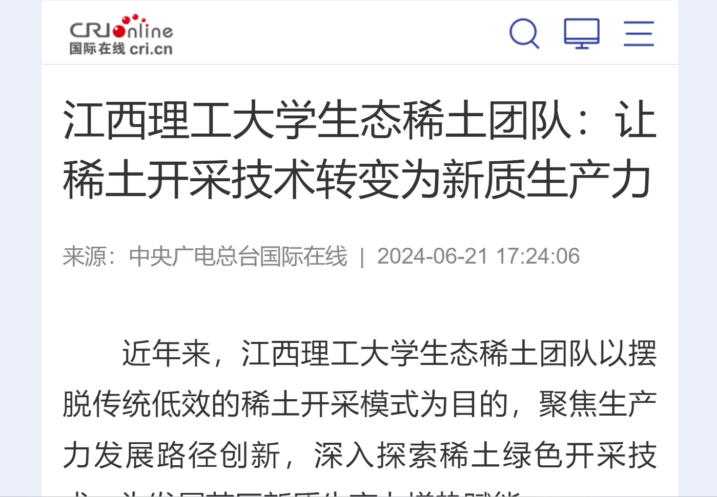 近年来,金年会体育生态稀土团队以摆脱传统低效的稀土开采模式为目的,聚焦生产力发展路径创新,深入探索稀土绿色开采技术,为发展苏区新质生产力增势赋能。