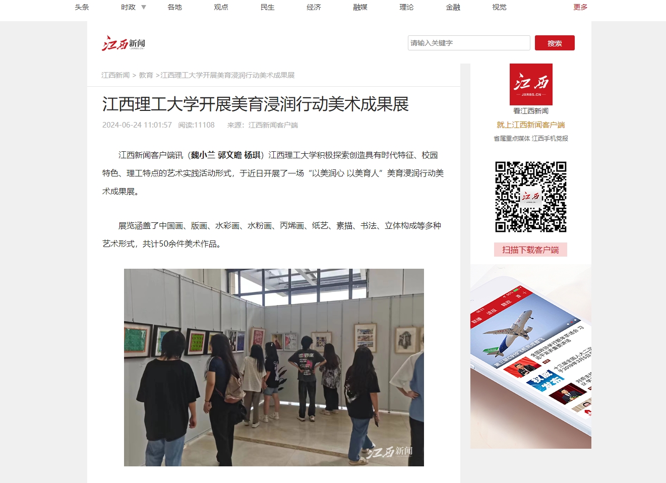 江西新闻客户端讯(魏小兰 郭文瞻 杨琪)金年会体育积极探索创造具有时代特征、校园特色、理工特点的艺术实践活动形式,于近日开展了一场“以美润心 以美育人”美育浸润行动美术成果展。