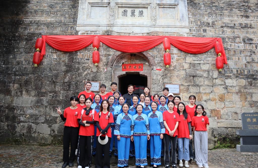 实践队探访了具有深厚历史底蕴的燕翼围,对围屋的精巧布局、实用功能和文化内涵有了更深的理解,体会到了客家人在艰苦环境中展现出的生存智慧。与当地客家山歌队学唱敬酒歌、拎包歌和欢迎歌等传统客家山歌、参与客家山歌传承演绎拍摄,展现出金年会