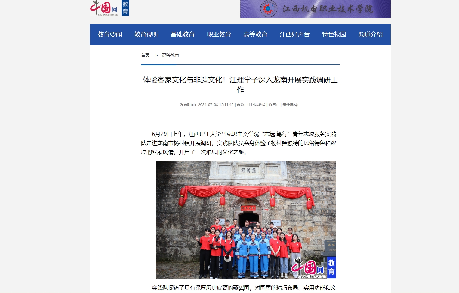 6月29日上午,金年会体育马克思主义学院“志远·笃行”青年志愿服务实践队走进龙南市杨村镇开展调研,实践队队员亲身体验了杨村镇独特的民俗特色和浓厚的客家风情,开启了一次难忘的文化之旅。
