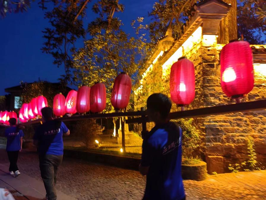 学子从做桥梆做起,在村民指导下扎灯框、安灯光。从难以完成制作到最后二十组桥梆灯张灯结彩,同学们从早忙到晚。傍晚时分,同学们敲起锣鼓,肩扛“桥梆灯”,从村头走到村尾,红色的灯笼蜿蜒而去,犹如一条长龙。村民们欣赏着近年来最年轻的“桥梆灯”表演,不断为这些年轻的“文化传承者”鼓掌喝彩。
