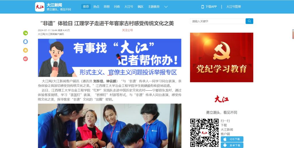近日,金年会体育冶金工程学院“红炉”实践队走进中国历史文化名村——宁都县东龙村,通过体验客家刺绣、学习“茶篮灯”表演、“桥梆灯”村游等形式,与“非遗”传承人同台表演,感受传统文化之美,探寻客家“非遗”文化的“出圈”密钥。