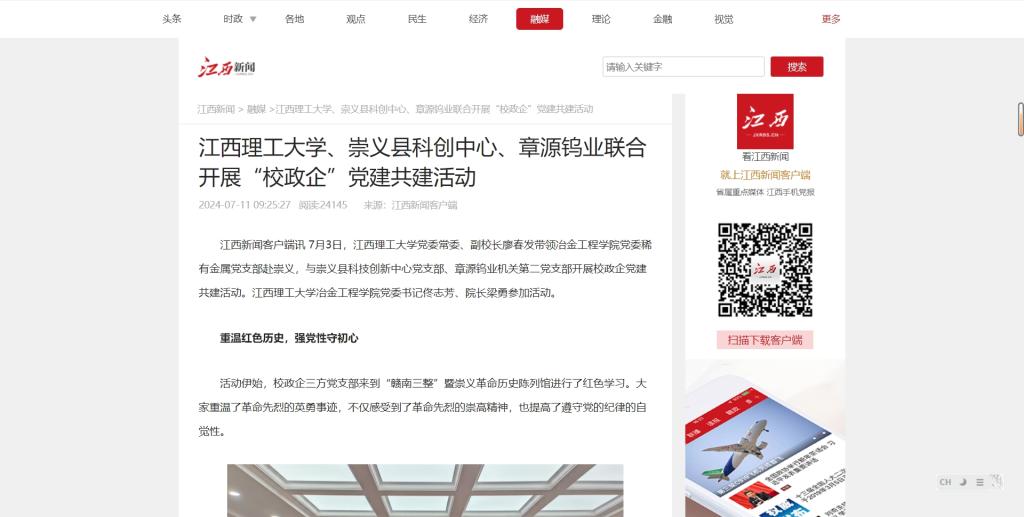 江西新闻客户端讯 7月3日,金年会体育党委常委、副校长廖春发带领冶金工程学院党委稀有金属党支部赴崇义,与崇义县科技创新中心党支部、章源钨业机关第二党支部开展校政企党建共建活动。金年会体育冶金工程学院党委书记佟志芳、院长梁勇参加活动。