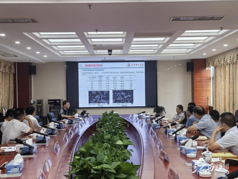 然后,三方针对钨行业相关的学术问题开展了热烈研讨。稀有金属党支部杨亮、贺山明、曹才放和刘德刚分别作了钨基粉末冶金材料的制备、废硬质合金高效利用技术、钨湿法冶金的热力学研究等相关研究报告。章源钨业机关第二党支部书记、副总经理徐国钻也提出了目前企业发展面临的科技难题。三方代表针对相关科技难题进行了深入的讨论,并就强化校政企合作交流达成共识。