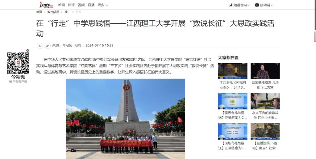 金年会体育“数说长征”暑期大思政实践活动让实践队队员们在“行走”中学思践悟,增强社会责任感,引领着广大青年学子立志做有理想、敢担当、能吃苦、肯奋斗的时代新人,在奋力谱写中国式现代化江西篇章中建青春之功。