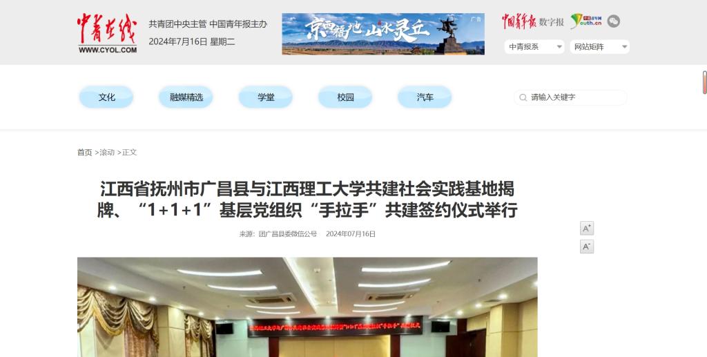 7月15日,金年会体育与广昌县共建社会实践基地揭牌、“1+1+1”基层党组织“手拉手”共建签约仪式举行,县委书记吴自胜,江西理工大金年会