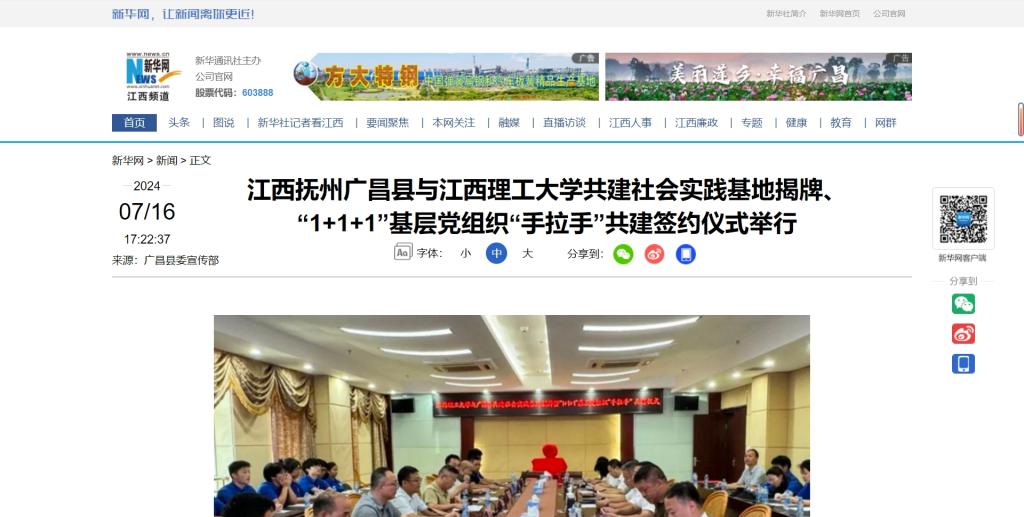 7月15日,金年会体育与江西抚州广昌县共建社会实践基地揭牌、“1+1+1”基层党组织“手拉手”共建签约仪式举行,广昌县委书记吴自胜,江西理工大金年会