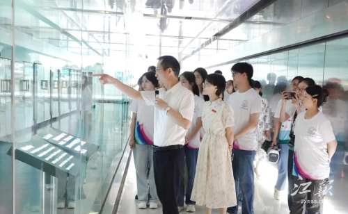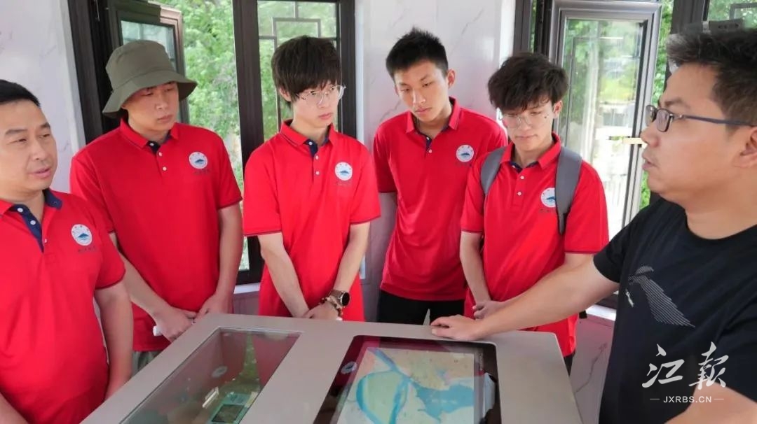 ▲以“江”为主线路的生态文明分队示范院校九江学院实践队在长江国家文化公园(江西)开展暑期大思政实践活动