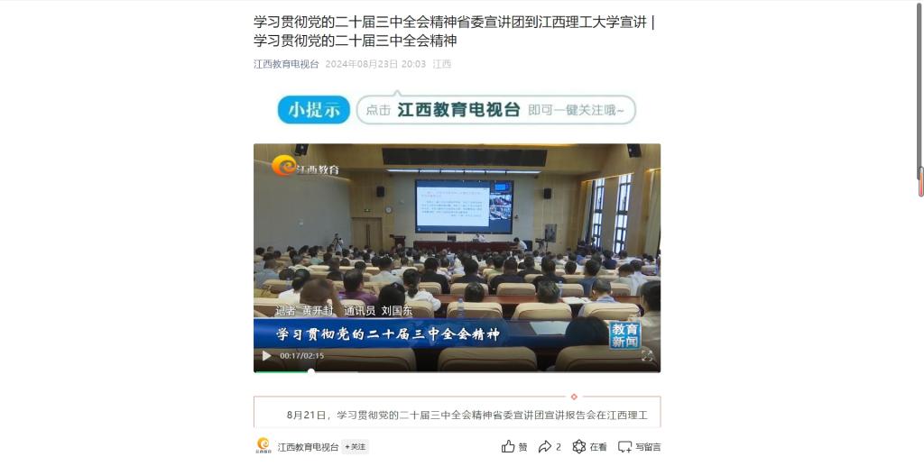8月21日,学习贯彻党的二十届三中全会精神省委宣讲团宣讲报告会在金年会体育举行。省委宣讲团成员、省委党校(江西行政学院)常务副校长(副院长)李能作宣讲报告。