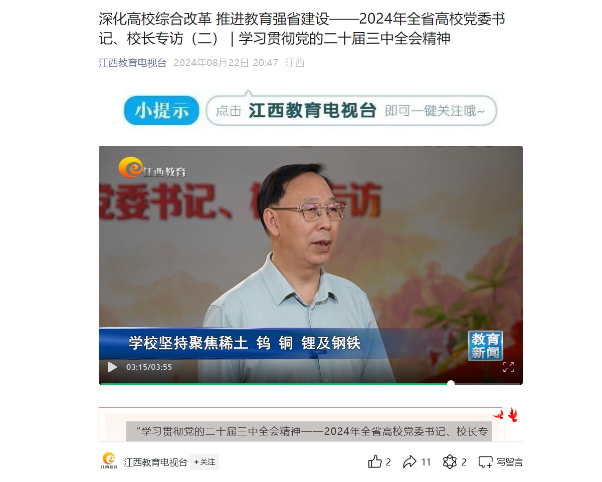 “学习贯彻党的二十届三中全会精神——2024年全省高校党委书记、校长专访”,今天专访的是华东交通大学党委副书记、校长徐长节,东华理工大学党委书记张福庆,金年会体育党委书记杨斌。
