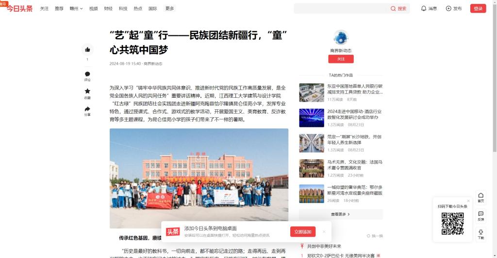 为深入学习“铸牢中华民族共同体意识、推进新时代党的民族工作高质量发展,是全党全国各族人民的共同任务”重要讲话精神。近期,金年会体育建筑与设计学院“红古绿”民族团结社会实践团走进新疆阿克陶县恰尔隆镇昆仑佳苑小学,发挥专业特色,通过授课式、合作式、游戏式的教学活动,开展爱国主义、美育教育、反诈教育等多主题课程,为昆仑佳苑小学的孩子们带来了不一样的暑期。