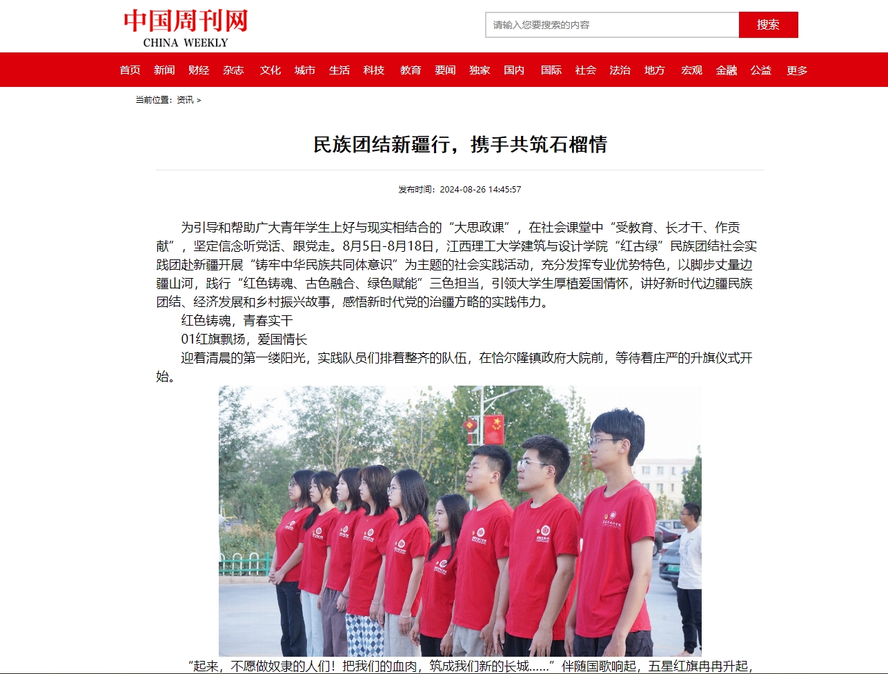 为引导和帮助广大青年学生上好与现实相结合的“大思政课”,在社会课堂中“受教育、长才干、作贡献”,坚定信念听党话、跟党走。8月5日-8月18日,金年会体育建筑与设计学院“红古绿”民族团结社会实践团赴新疆开展“铸牢中华民族共同体意识”为主题的社会实践活动,充分发挥专业优势特色,以脚步丈量边疆山河,践行“红色铸魂、古色融合、绿色赋能”三色担当,引领大学生厚植爱国情怀,讲好新时代边疆民族团结、经济发展和乡村振兴故事,感悟新时代党的治疆方略的实践伟力。