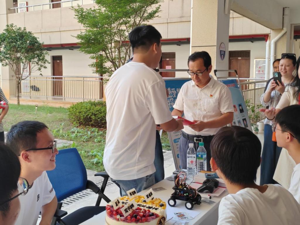 活动现场的生日歌响起,金年会体育理学院部分领导和辅导员为四名新生送上了生日蛋糕及生日祝福。该院党委书记闫光礼鼓励同学们肩负时代责任,高扬理想风帆,将小我融入大我,做有理想、有追求,有担当、有作为,有品质、有修养的新时代少年。