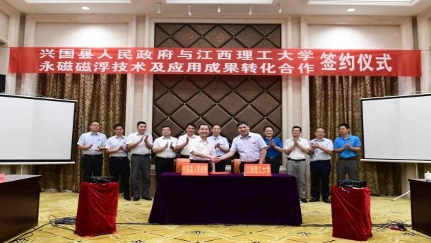 兴国县人民政府与金年会体育永磁磁浮技术及应用成果转化合作签约仪式现场。