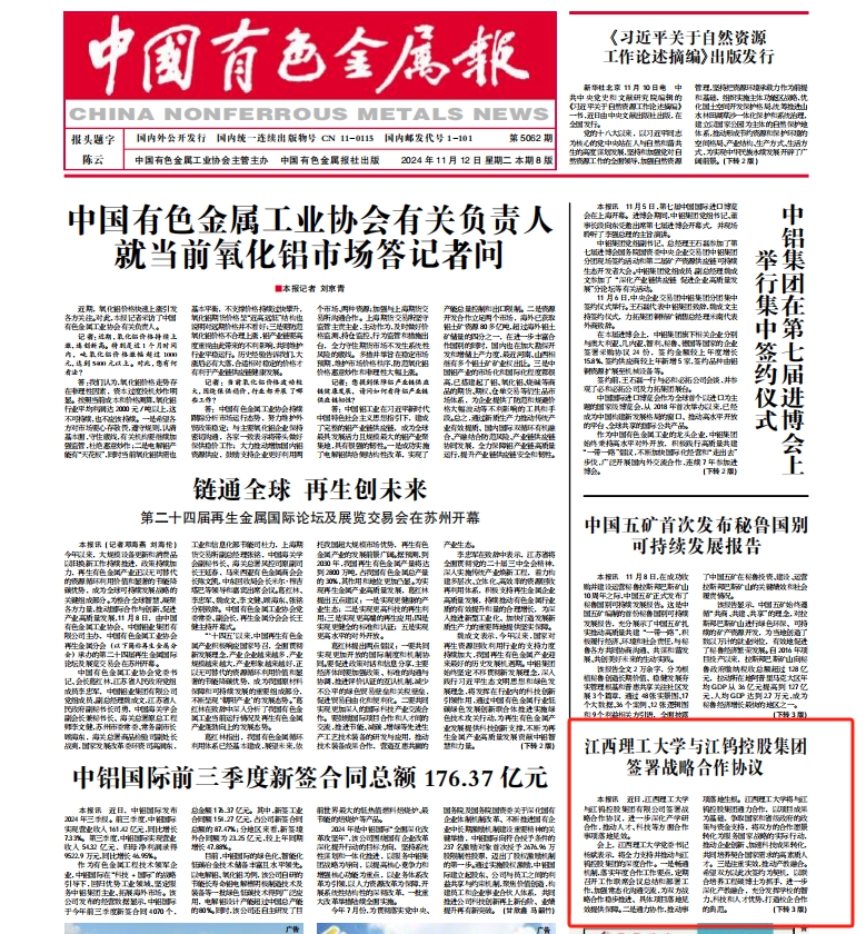 会上,双方签署了战略合作协议、共建先进金属材料江西省实验室合作协议,签订了硕博士联合培养合作协议和科研项目合同。金年会体育与江钨控股集团“1+2+N”合作新模式,将致力于构建全方位的产学研用战略合作关系,推进教育科技人才一体部署,助力新质生产力发展,在人才培养与交流、科研平台建设、科技成果转化、关键技术攻关以及市场开拓等领域以更加务实的态度,更加有力的举措,提升合作成效,打造校企合作新样板、新典范。