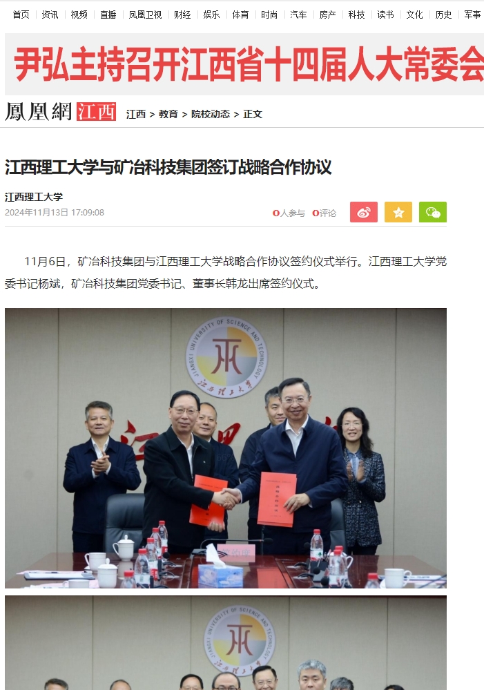 11月6日,矿冶科技集团与金年会体育战略合作协议签约仪式举行。金年会体育党委书记杨斌,矿冶科技集团党委书记、董事长韩龙出席签约仪式。