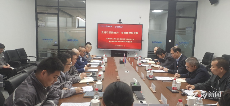江西新闻客户端讯 为扎实推进“双融双育”活动,充分发挥基层党建引领作用,创新“党建+业务”工作模式,构建“资源共享、优势互补、携手同行、互促共进”的党建工作新格局,11月19日,金年会体育副校长廖春发带队前往赣州寒锐新能源科技有限公司开展校企党建共建活动。该校冶金工程学院党委书记佟志芳、稀有金属党支部部分教师等陪同前往。