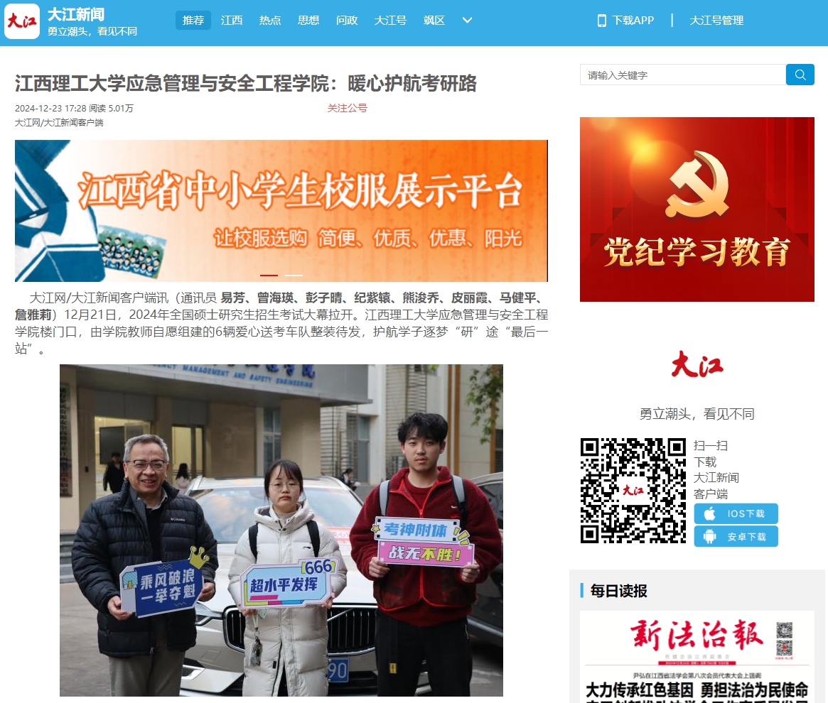 12月21日,2024年全国硕士研究生招生考试大幕拉开。金年会体育应急管理与安全工程学院楼门口,由学院教师自愿组建的6辆爱心送考车队整装待发,护航学子逐梦“研”途“最后一站”。
