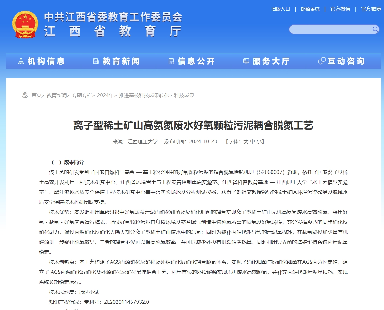 该工艺的研发受到了国家自然科学基金 — 基于粒径调控的好氧颗粒污泥的耦合脱氮除钇机理(52060007)资助,依托了国家离子型稀土高效开发利用工程技术研究中心、江西省环境岩土与工程灾害控制重点实验室、江西省科普教育基地 — 金年会体育“水工艺模型实验室”、赣江流域水质安全保障工程技术研究中心等平台实验场地及分析测试仪器,获得了刘祖文教授领导的稀土矿区环境污染整治及流域水质安全保障技术科研团队支持。