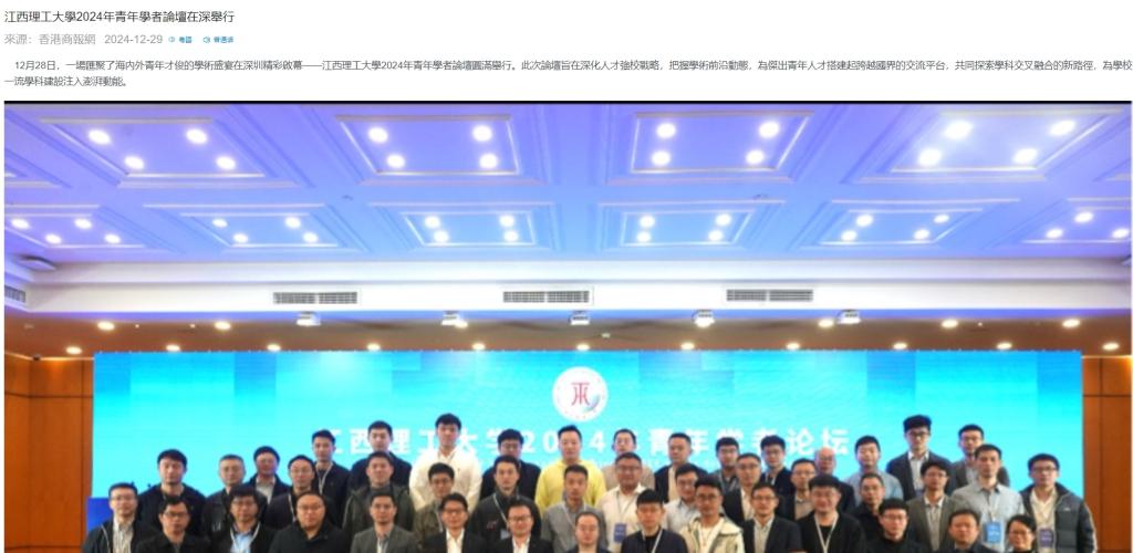 12月28日,一場匯聚了海內外青年才俊的學術盛宴在深圳精彩啟幕——江西理工大學2024年青年學者論壇圓滿舉行。此次論壇旨在深化人才強校戰略,把握學術前沿動態,為傑出青年人才搭建起跨越國界的交流平台,共同探索學科交叉融合的新路徑,為學校一流學科建設注入澎湃動能。