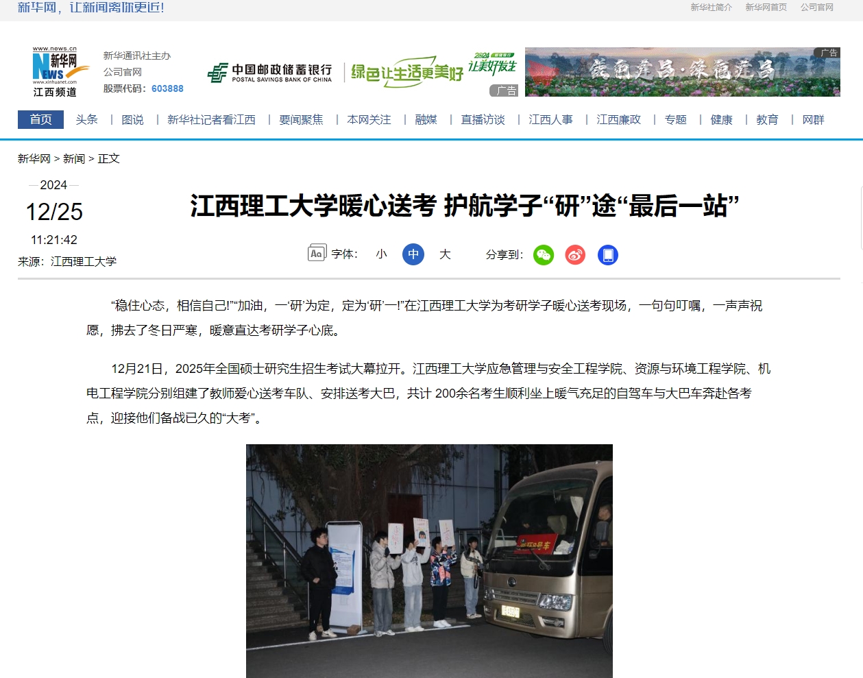 12月21日,2025年全国硕士研究生招生考试大幕拉开。金年会体育应急管理与安全工程学院、资源与环境工程学院、机电工程学院分别组建了教师爱心送考车队、安排送考大巴,共计 200余名考生顺利坐上暖气充足的自驾车与大巴车奔赴各考点,迎接他们备战已久的“大考”。