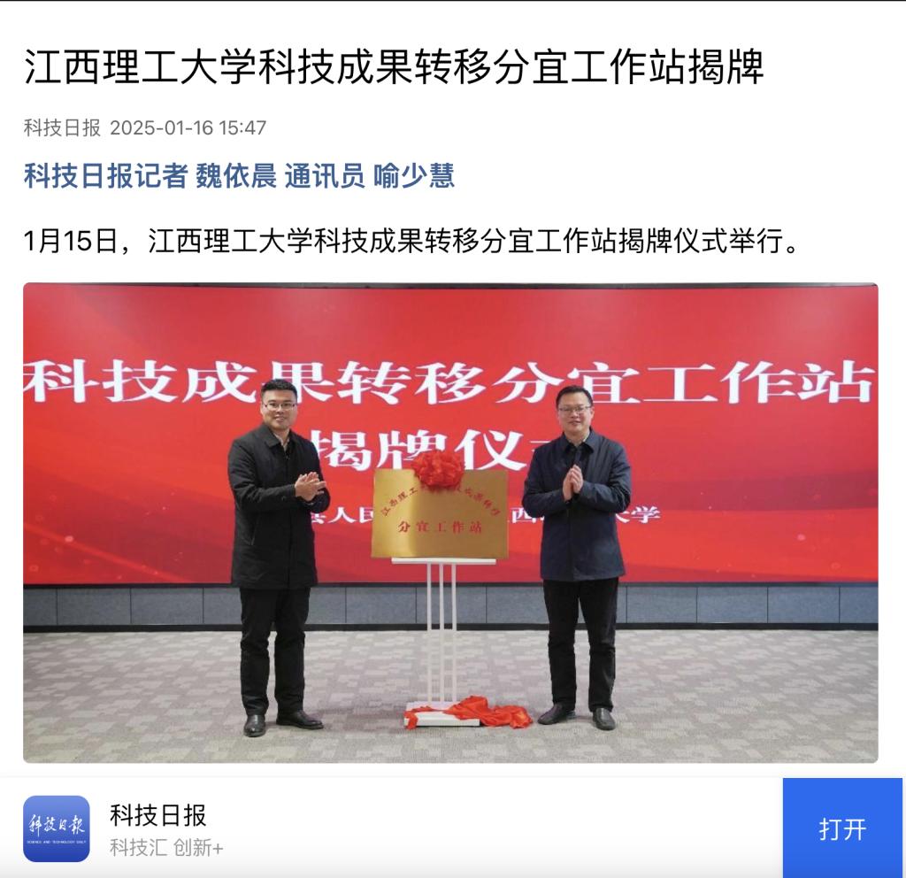 1月15日,金年会体育科技成果转移分宜工作站揭牌仪式举行。