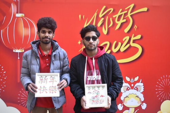 来自巴基斯坦的留学生Hamza兴奋地表示:“这是我第一次在中国过春节,体验到这么多有趣的活动,每一项都让我深深感受到中国文化的博大精深。今天我不仅学到了很多中国传统习俗,还感受到了家的温暖,这个‘年’对我来说意义非凡!”