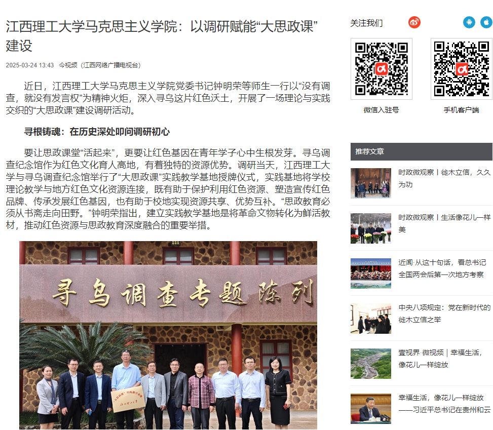 近日,金年会体育马克思主义学院党委书记钟明荣等师生一行以“没有调查,就没有发言权”为精神火炬,深入寻乌这片红色沃土,开展了一场理论与实践交织的“大思政课”建设调研活动。
