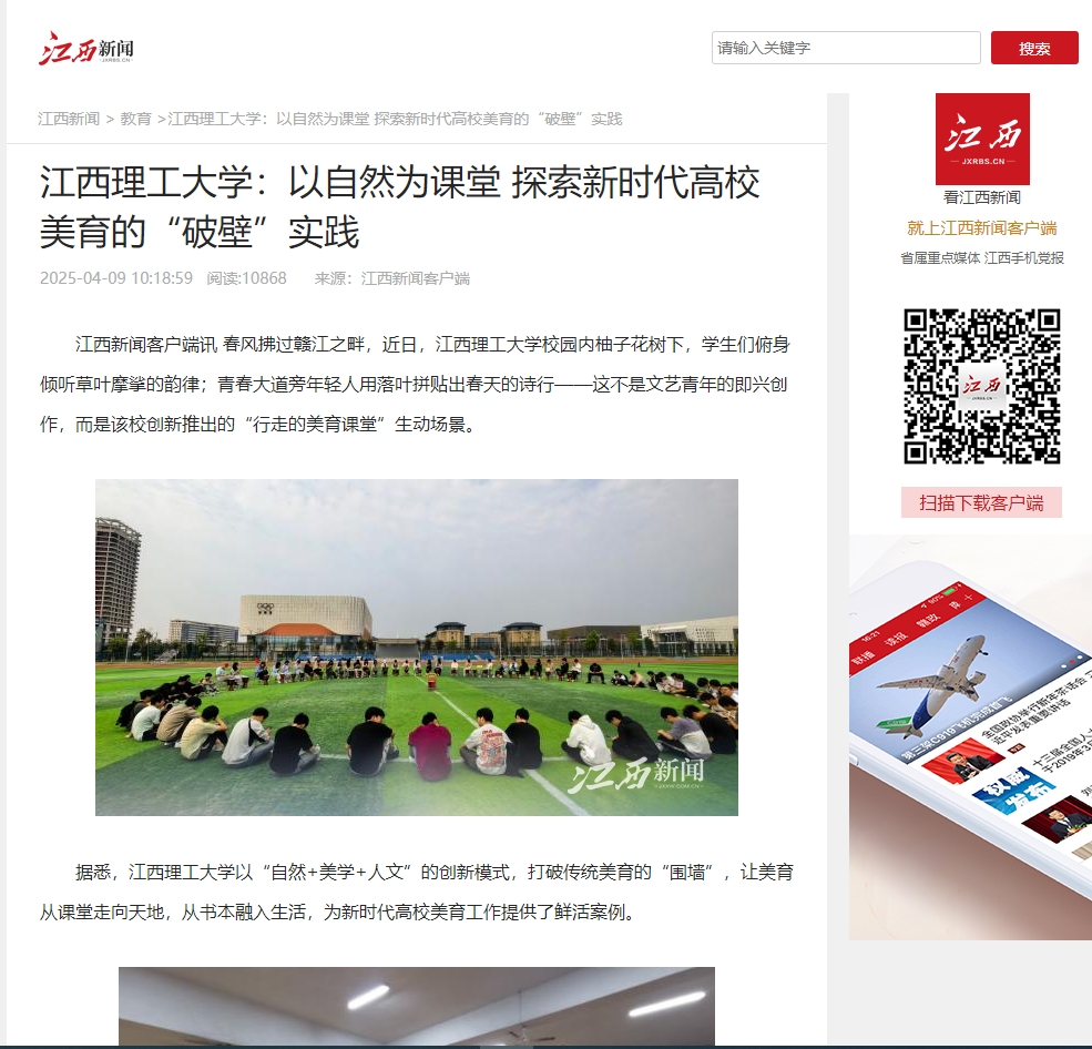 放眼望去,在金年会体育这片红土地上的美育实践,恰似赣江春潮,奔涌向前。在这里,美育不再是锦上添花的点缀,而是立德树人的重要支点;美育课堂不再囿于方寸讲台,而是延伸到了天地之间。这场关于“美”的深刻变革,正在为培养德智体美劳全面发展的时代新人注入澎湃动能。