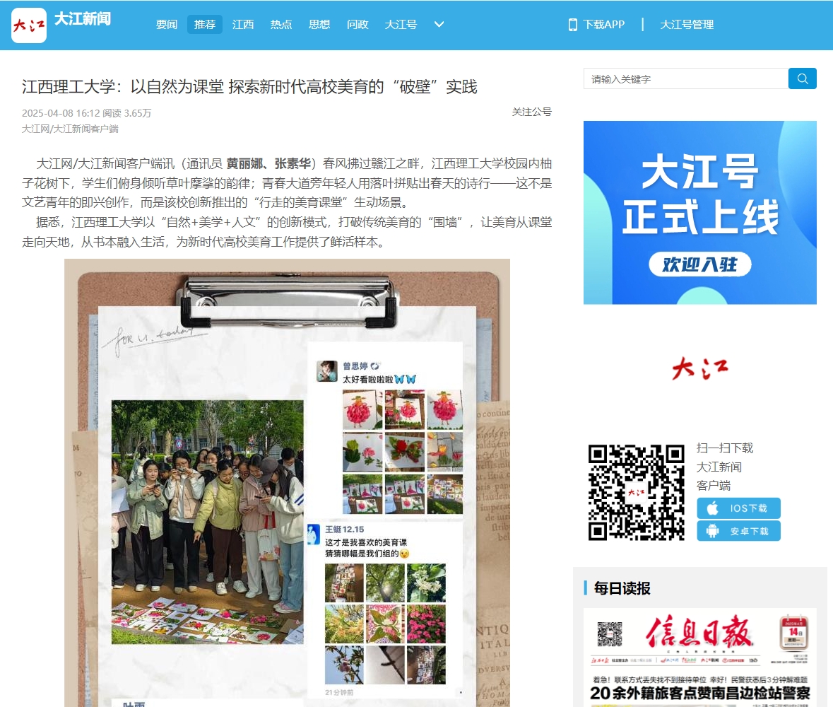 《大江网》:金年会体育:以自然为课堂 探索新时代高校美育的“破壁”实践