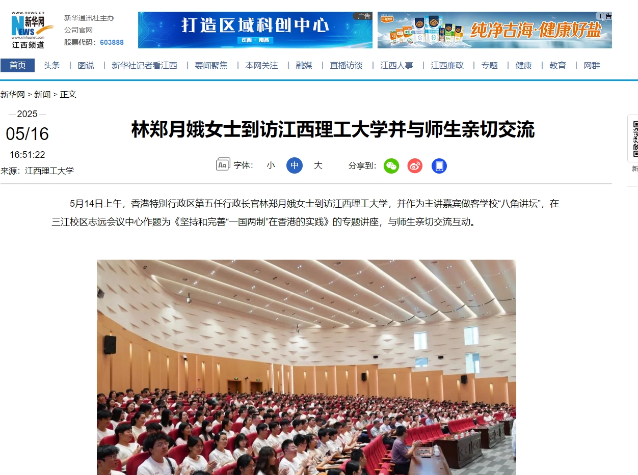对林郑月娥女士的到来表示热烈欢迎,并表示,此次到访是一个良好的开端,将有效推动赣港两地高校、企业之间的合作交流。未来,全校师生将传承红色基因,主动融入粤港澳大湾区建设,为推进中国式现代化贡献金年会