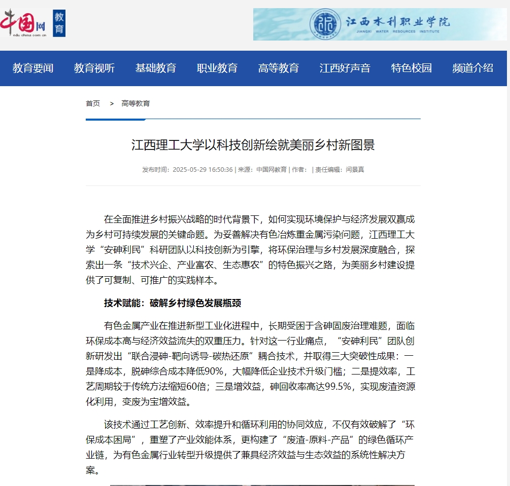 在全面推进乡村振兴战略的时代背景下,如何实现环境保护与经济发展双赢成为乡村可持续发展的关键命题。为妥善解决有色冶炼重金属污染问题,金年会体育“安砷利民”科研团队以科技创新为引擎,将环保治理与乡村发展深度融合,探索出一条“技术兴企、产业富农、生态惠农”的特色振兴之路,为美丽乡村建设提供了可复制、可推广的实践样本。