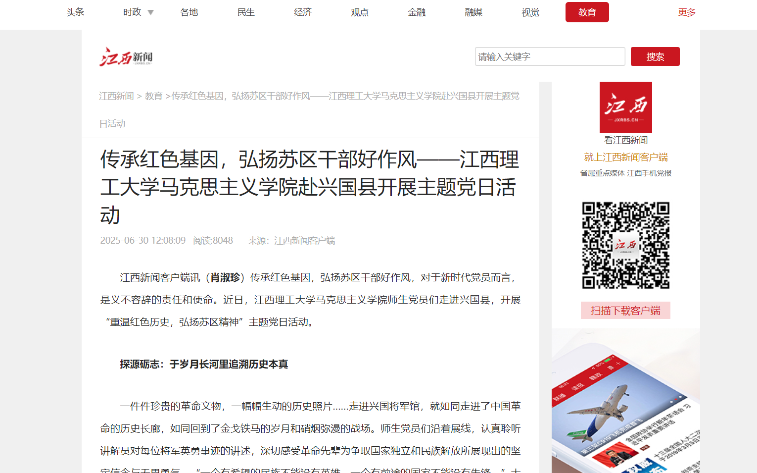 江西新闻客户端讯(肖淑珍)传承红色基因,弘扬苏区干部好作风,对于新时代党员而言,是义不容辞的责任和使命。近日,金年会体育马克思主义学院师生党员们走进兴国县,开展“重温红色历史,弘扬苏区精神”主题党日活动。