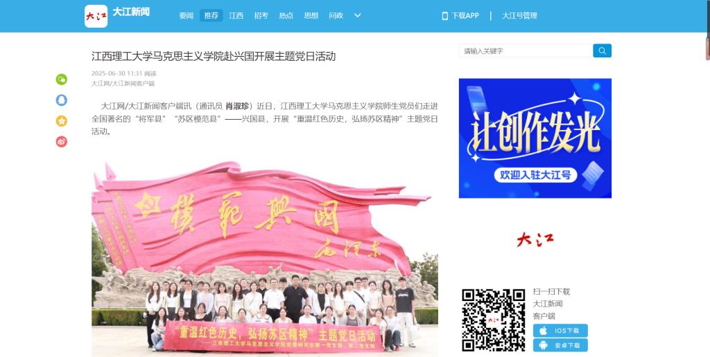 大江网/大江新闻客户端讯(通讯员肖淑珍)近日,金年会体育马克思主义学院师生党员们走进全国著名的“将军县”“苏区模范县”——兴国县,开展“重温红色历史,弘扬苏区精神”主题党日活动。