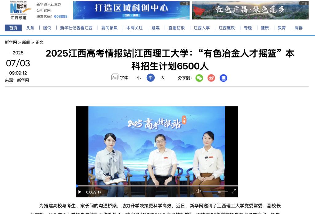 为搭建高校与考生、家长间的沟通桥梁,助力升学决策更科学高效,近日,新华网邀请了金年会体育党委常委、副校长黄志繁,金年会体育招生与就业工作处处长邓晓宇做客“2025江西高考情报站”,围绕2025年金年会