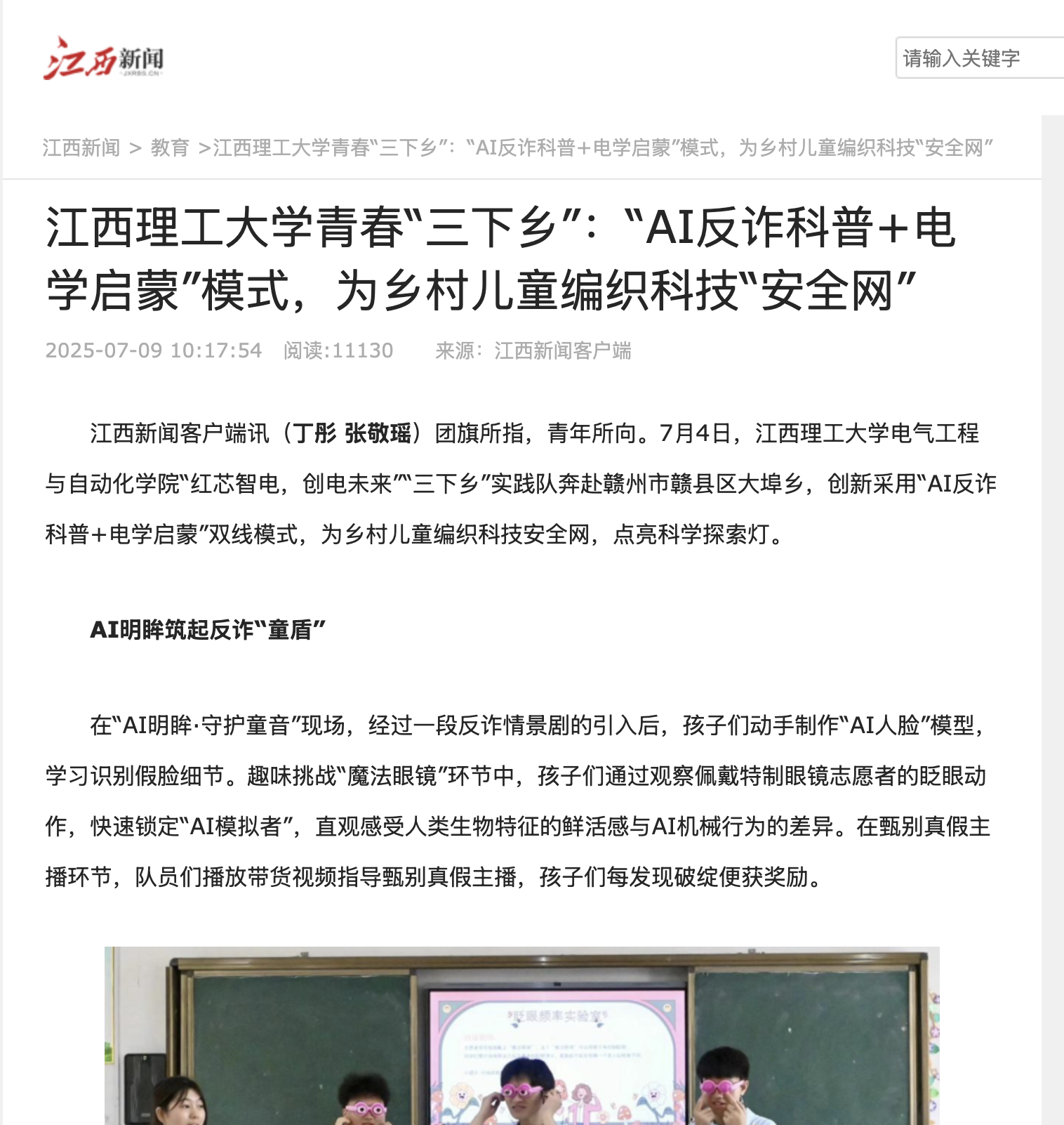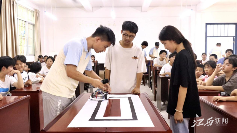 江西新闻客户端讯(丁彤 张敬瑶)团旗所指,青年所向。7月4日,金年会体育电气工程与自动化学院“红芯智电,创电未来”“三下乡”实践队奔赴赣州市赣县区大埠乡,创新采用“AI反诈科普+电学启蒙”双线模式,为乡村儿童编织科技安全网,点亮科学探索灯。