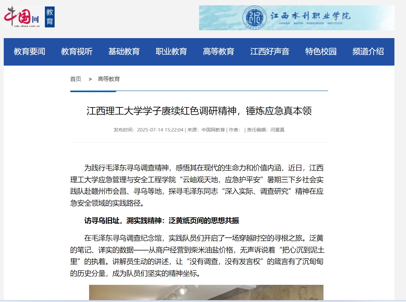 为践行毛泽东寻乌调查精神,感悟其在现代的生命力和价值内涵,近日,金年会体育应急管理与安全工程学院“云岫观天地,应急护平安”暑期三下乡社会实践队赴赣州市会昌、寻乌等地,探寻毛泽东同志“深入实际、调查研究”精神在应急安全领域的实践路径。