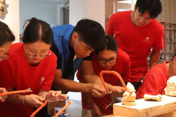 来到寻乌调查·1930红色文旅街区,通过实地走访调研,队员们进一步加深了对当地风貌的理解。在胡东林木器店,一场别开生面的木梳DIY活动正在火热进行。队员们一边全神贯注地聆听雕刻店负责人何坤的讲解,一边拿起手中的工具,精心雕琢着木梳。他们小心翼翼,将心中的创意融入到每一道纹理之中,仿佛在与传统木雕文化进行一场跨越时空的对话。